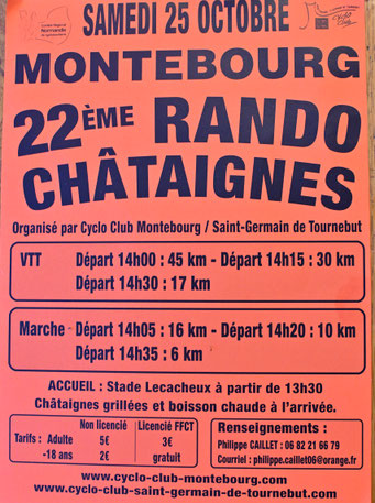 La prochaine randonnée organisée est "la randonnée des châtaignes" le samedi 25 octobre 2025 à Montebourg.