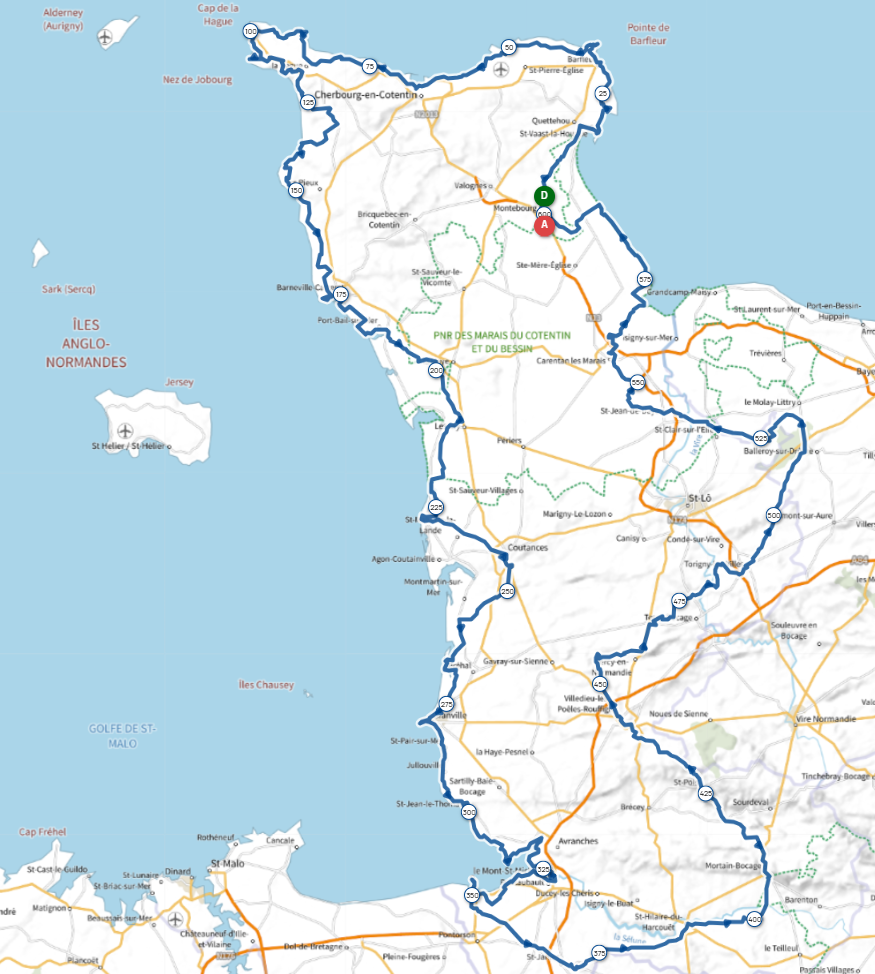 Le week-end 8 mai 2026 (8 - 10 mai 2025), nous vous proposons au départ de Montebourg (Manche - 50), en autonomie, un superbe tour du département de la Manche par les petites routes.